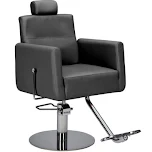 Denna professionella barberarstol har svart slitstark klädsel, ett justerbart ryggstöd och ett bekvämt, ställbart nackstöd som ger maximal komfort till dina kunder. Det eleganta, kromade fotstödet och den robusta kromade hydraulpumpen med rund bas gör stolen både stabil och snygg.